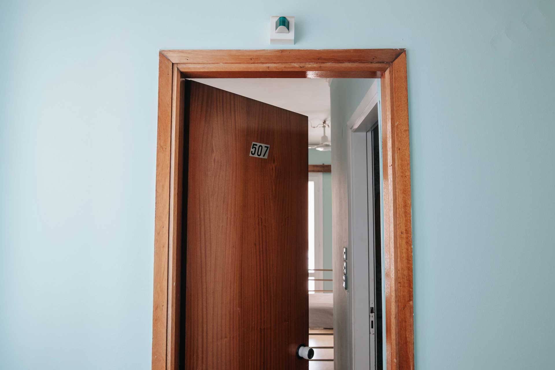 Στο εξαώροφο κτίριο δυναμικότητας 100 κλινών, διαθέτουμε μονόκλινα, δίκλινα και τρίκλινα δωμάτια όλα φωτεινά με βεράντα η μεγάλο μπαλκόνι κάνοντας την διαμονή άνετη και ευχάριστη.
